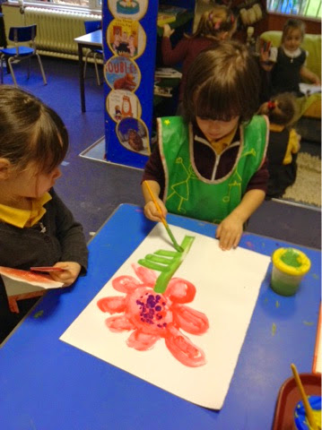 We listened to the story of Rapunzel and discussed it. Look at the paintings we have done for the Rapunzel display.